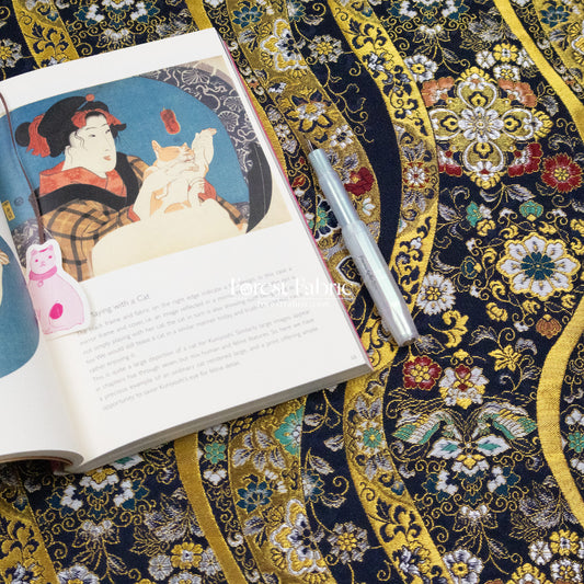Gold Brocade - Kikko fabric Navy