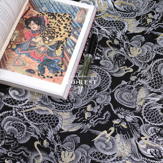 Gold Brocade - Dragon fabric GrayGold