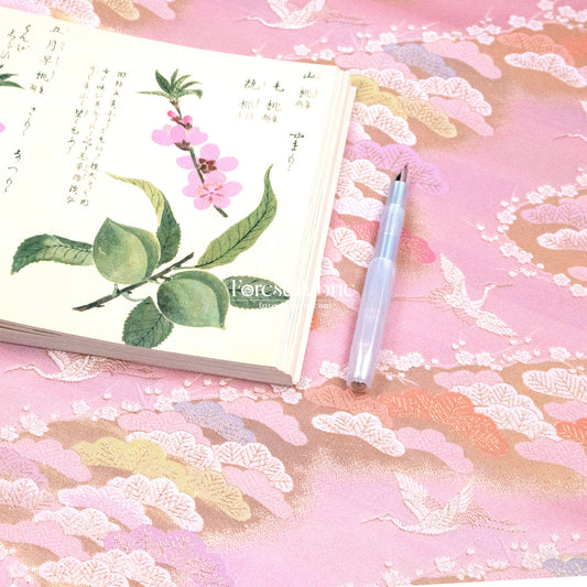 Gold Brocade - Cranes and Ancient Pines fabric Pink
