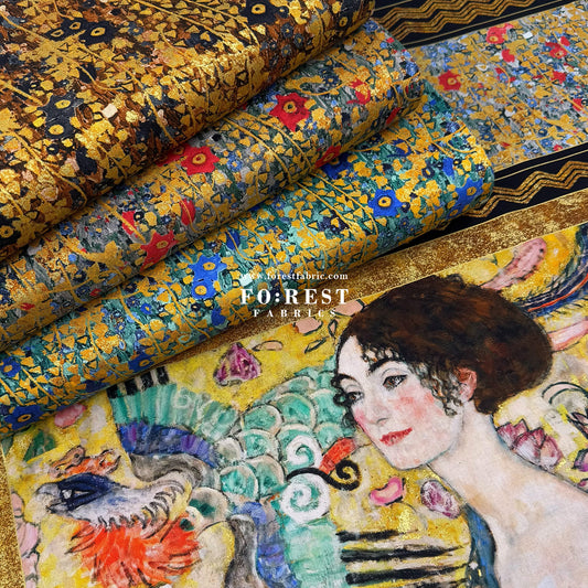 cotton - Gustav Klimt Flower Metallic fabric gold