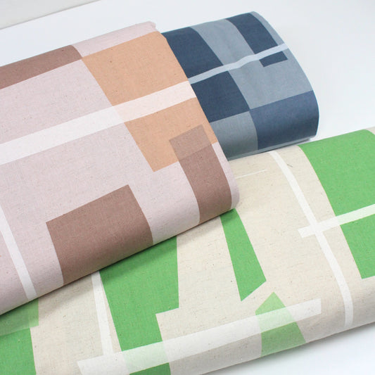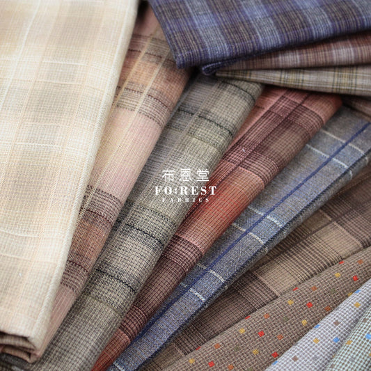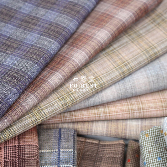 cotton linen - Modern art watercolor multi check fabric Khaki