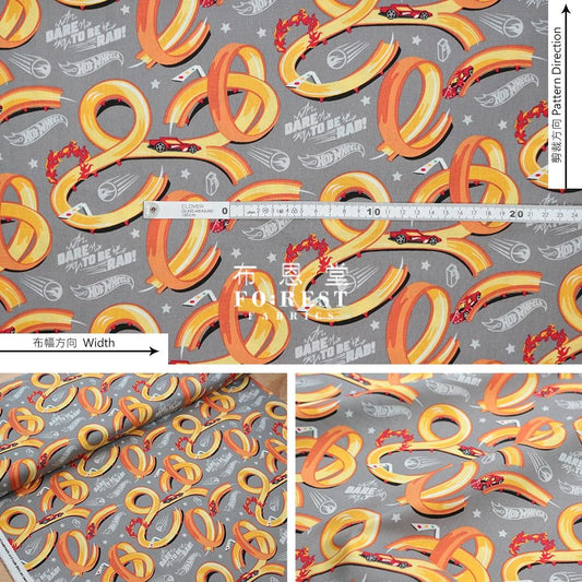 Cotton - Hot wheel Tracks CAR fabric GRAY