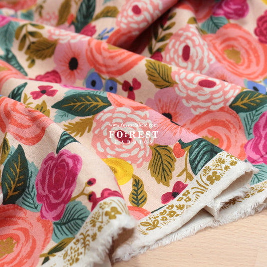 cotton Linen Canvas - Garden Party Juliet Rose fabric Pink