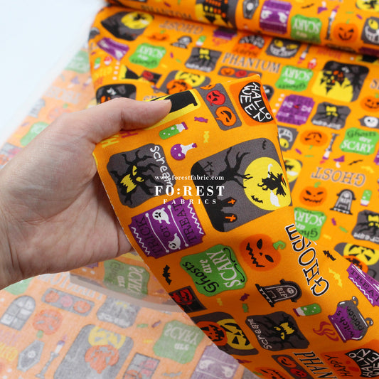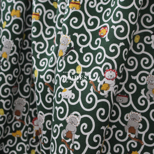 cotton - Lucky cat Mount FUJI fabric Mustard