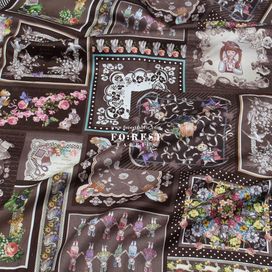 Satin Super Cotton - JoliFleur Itoi patchwork fabric Brown