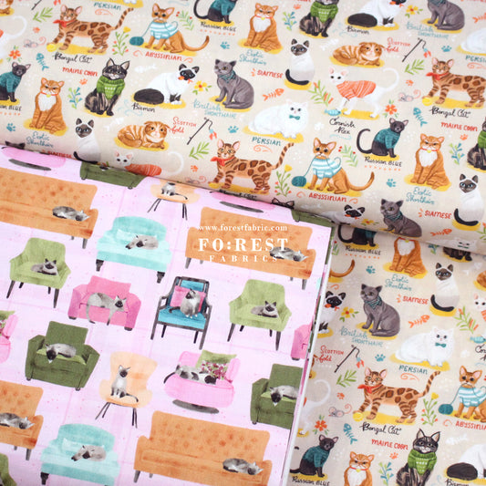 Sold out 售罄cotton - Sakura Blooms cat fabric Pink