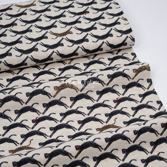 cotton Linen - Flying Cat and Leopard fabric