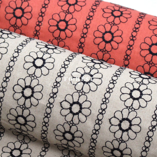 embroidery cotton Linen - Daisy Flower fabric OrangePink