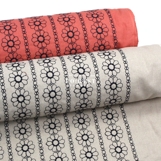 embroidery cotton Linen - Daisy Flower fabric Natural