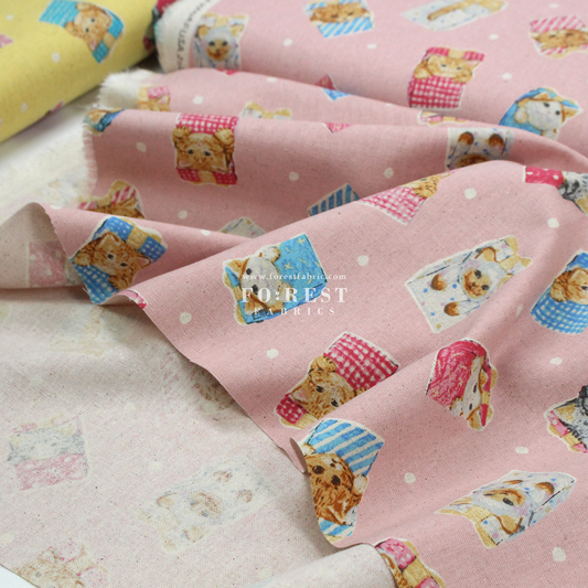 cotton linen - hello from present fabric Pink