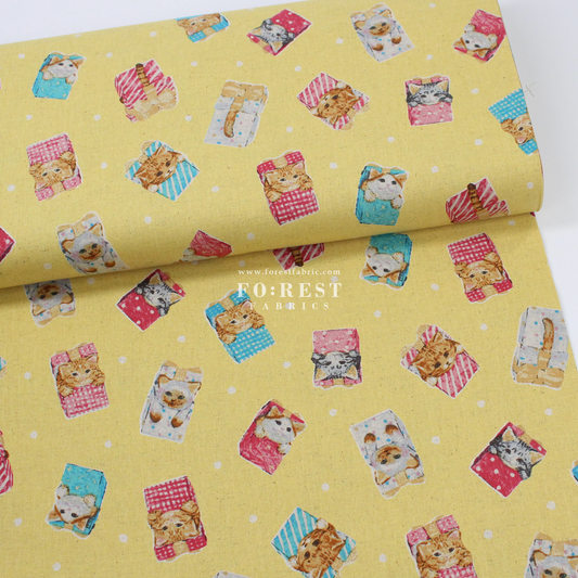 cotton linen - hello from present fabric Yellow