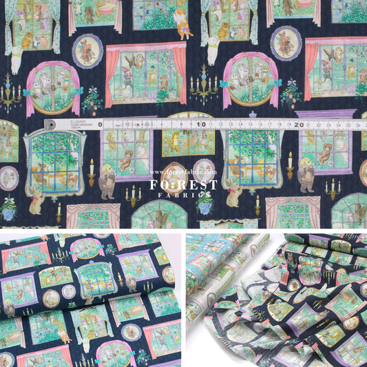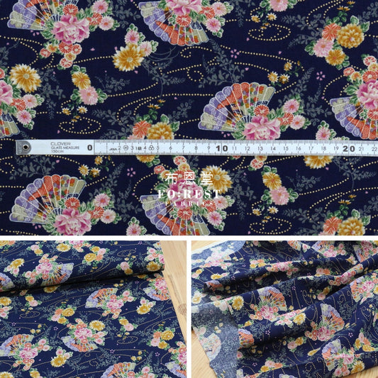 Sold out 售罄cotton - Peony Japanese fabric Navy
