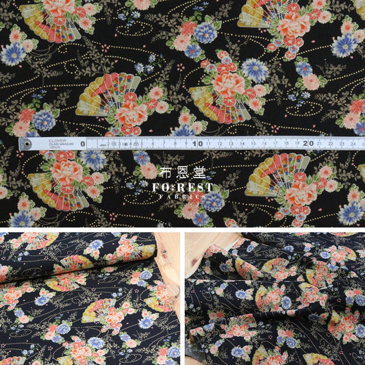 Cotton - Kanoko fan 鹿子扇 fabric Black