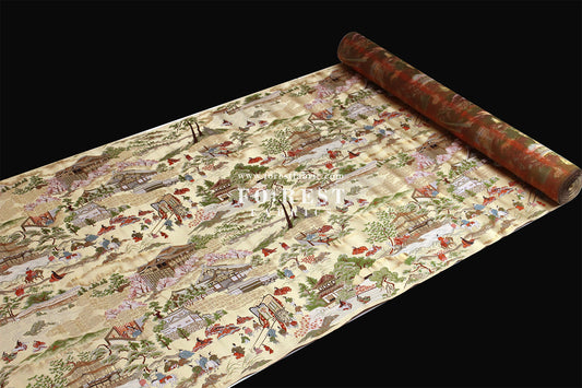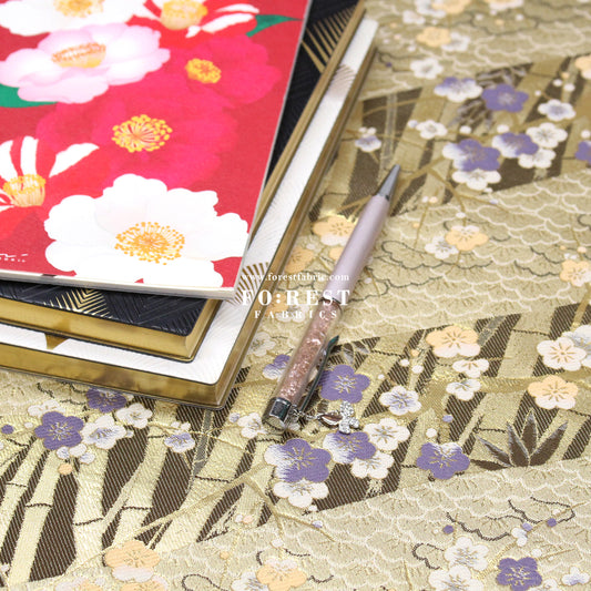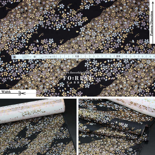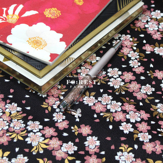 Gold Brocade - Sakura River 水波櫻 fabric LT. Black