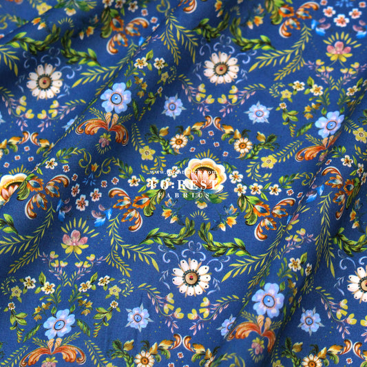 Liberty of London (Cotton Tana Lawn Fabric) - Rosemaling BLUE