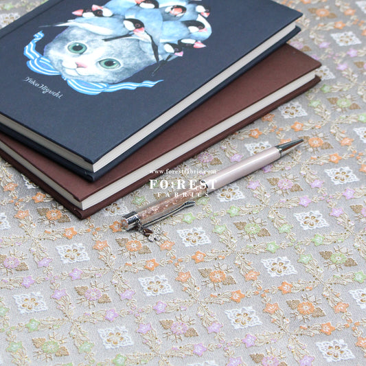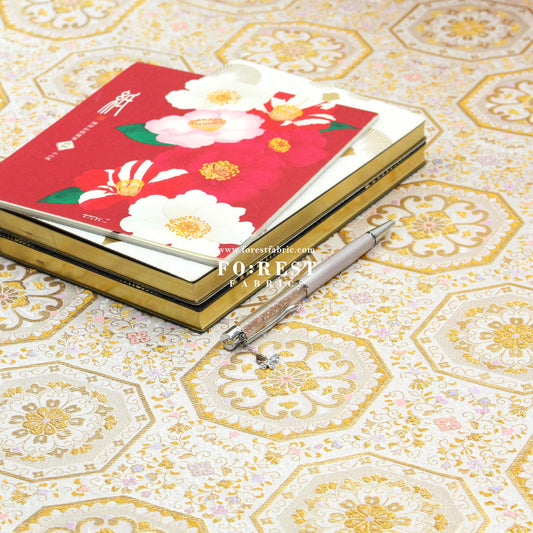 Gold Brocade - SHIPPO 七寶KINRAN fabric LightPink