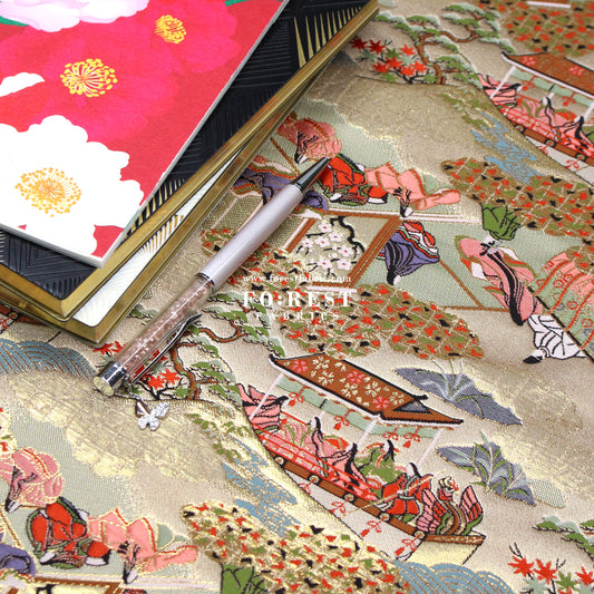 Gold Brocade - Crane sakura river fabric BlackMoss