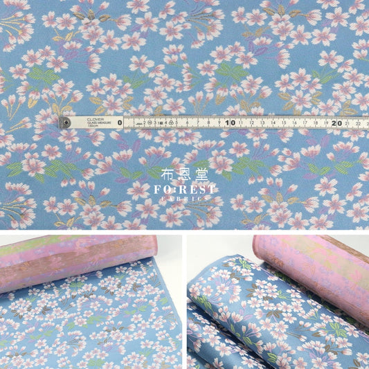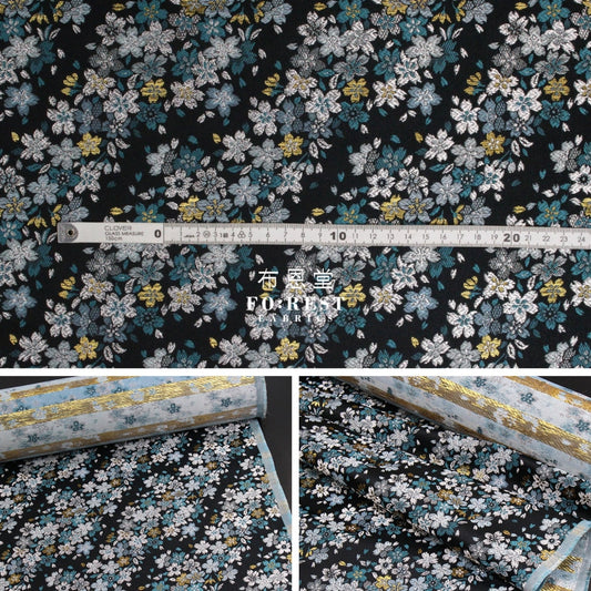 Gold Brocade - Sakura bud fabric BLUE