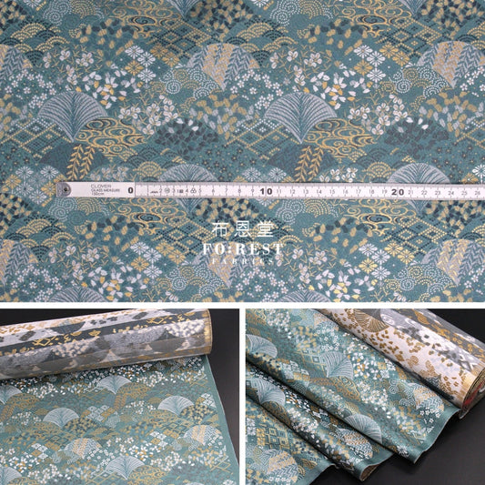 Gold Brocade - flower river fabric LT.Green