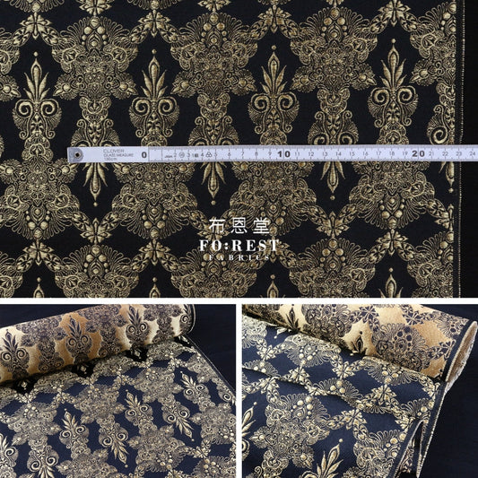 Gold Brocade - Circle of Life fabric Navy