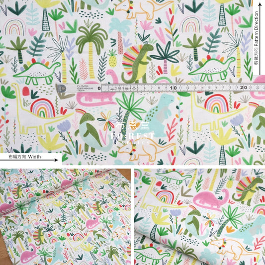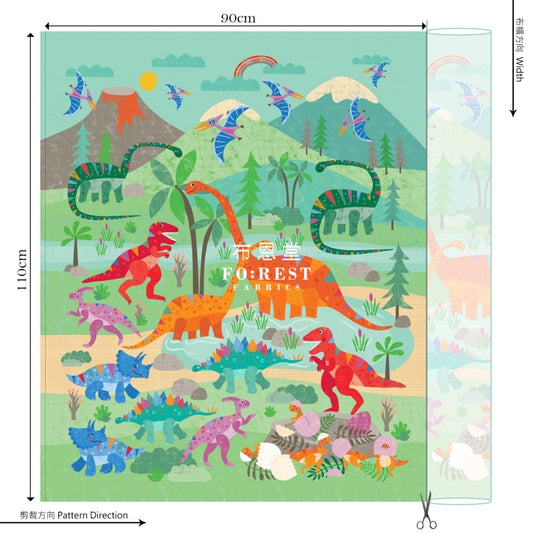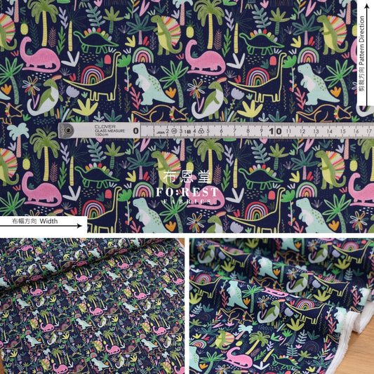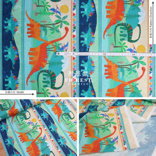 cotton - Rainbow Dinosaur Land Stripe fabric