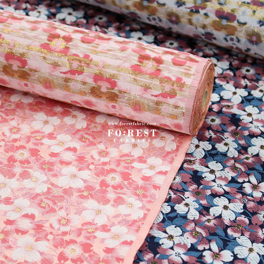 Gold Brocade - Snow sakura 雪輪櫻 fabric Gold