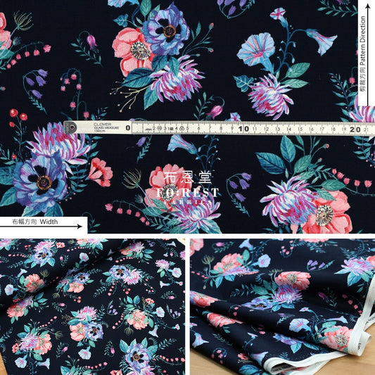 cotton Linen Canvas - Garden Party Juliet Rose fabric Navy