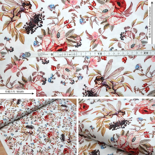 Sold out 售罄cotton - Strawberry Pink (Single Border) fabric
