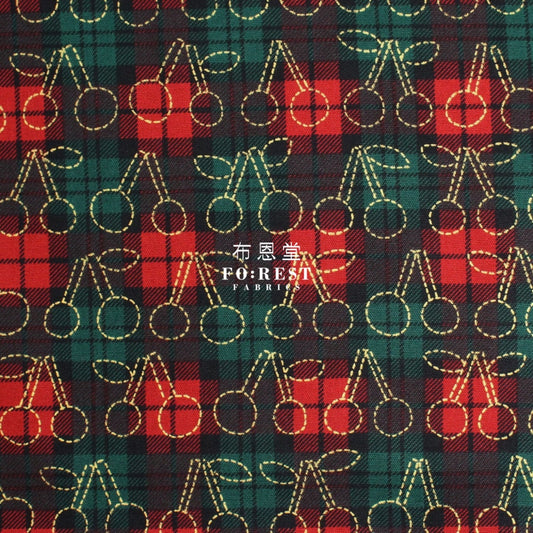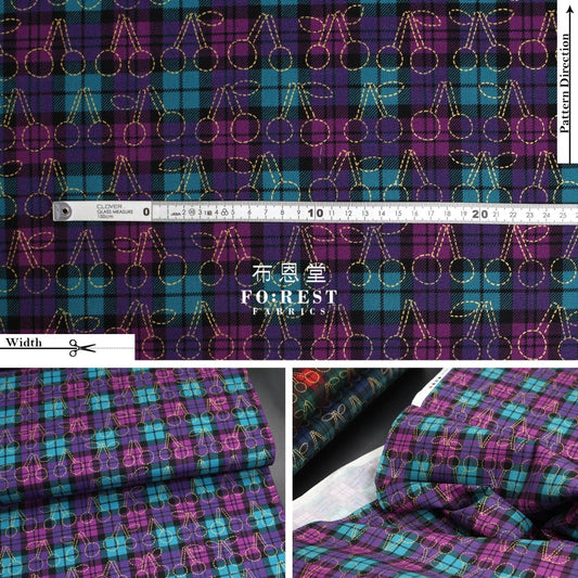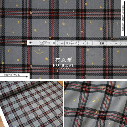 cotton - Tartan Fruit Party with metallic fabric Gray