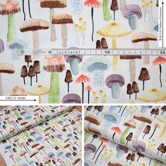 cotton - Fragrant mushrooms fabric white