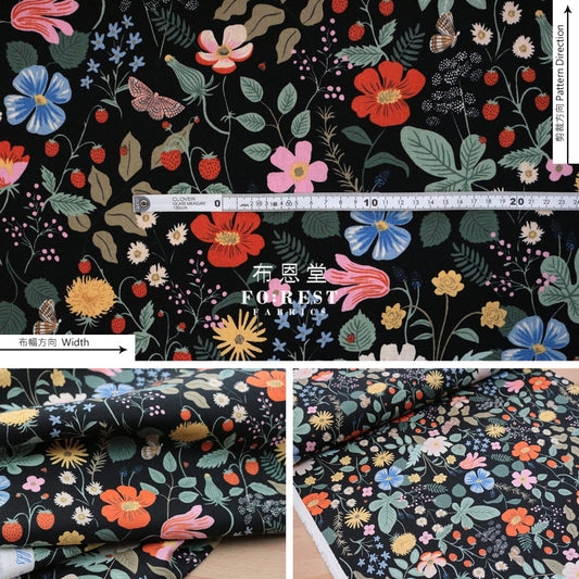 cotton Linen Canvas - Strawberry Fields fabric Black