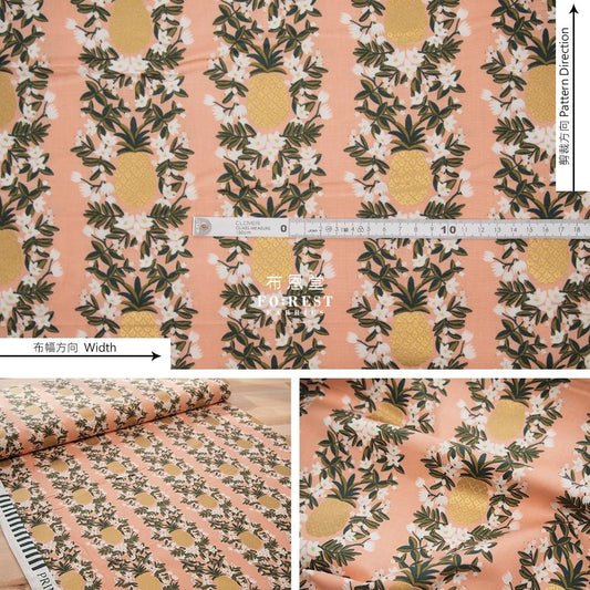 cotton Linen Canvas - Summer Pineapple fabric PEACH