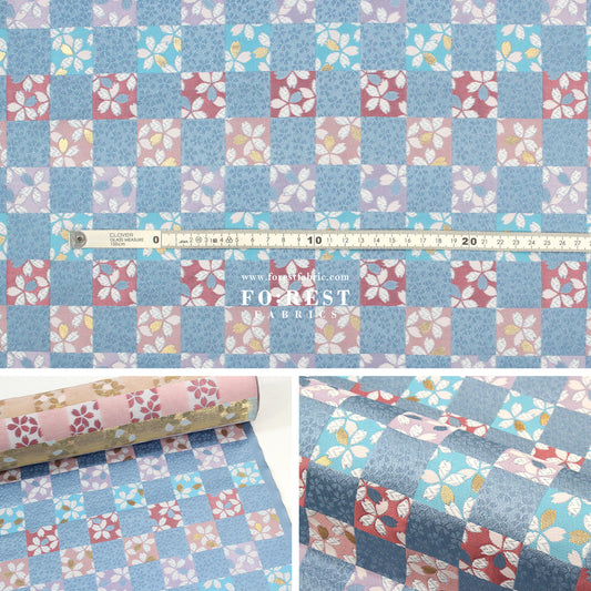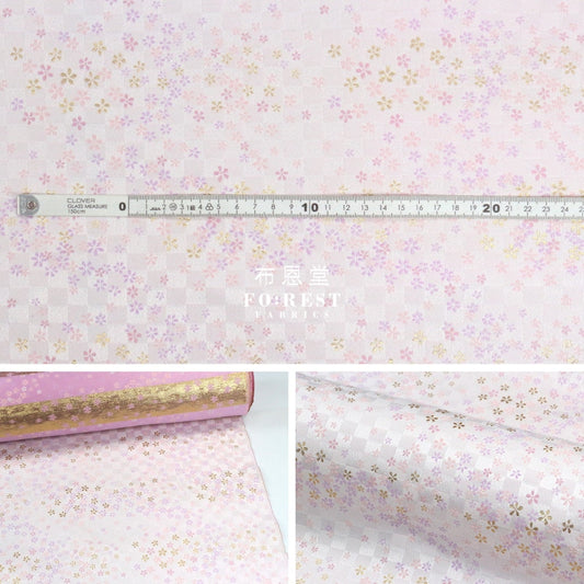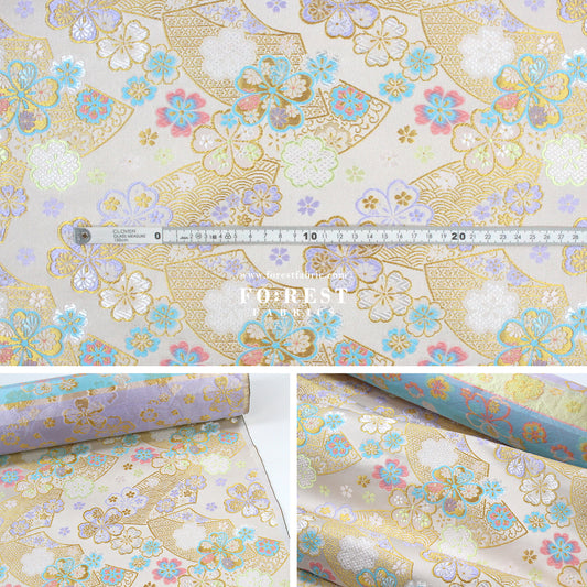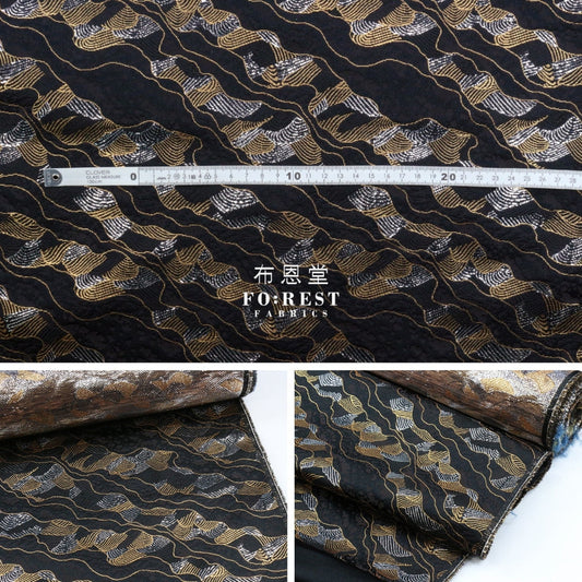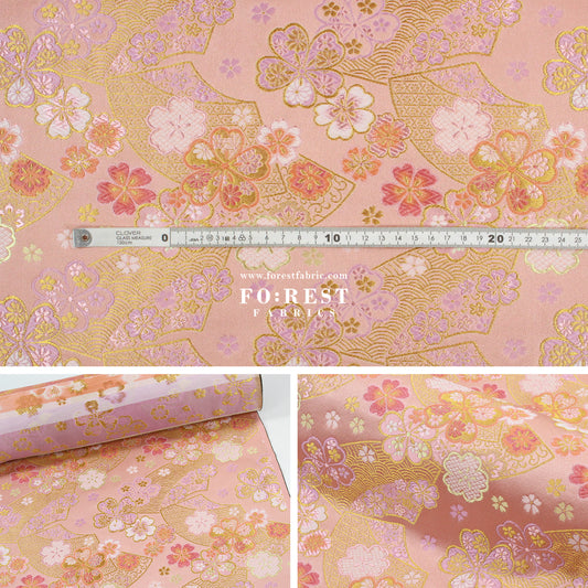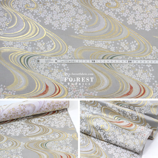 Gold Brocade - Sakura River 水波櫻 fabric LT. Black