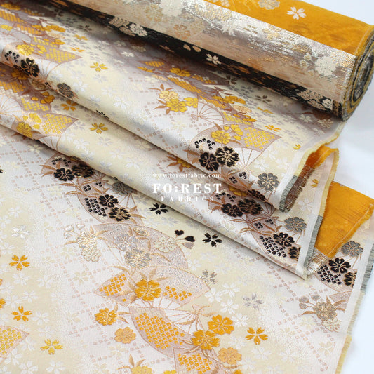 Gold Brocade - Mindnight sakura Fan 櫻扇 fabric Mustard