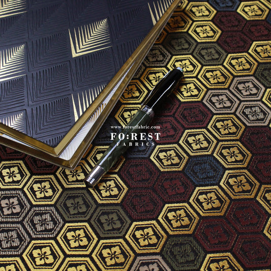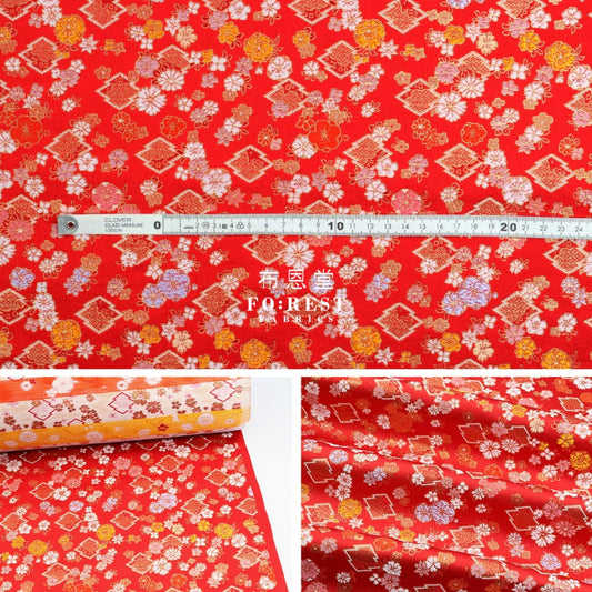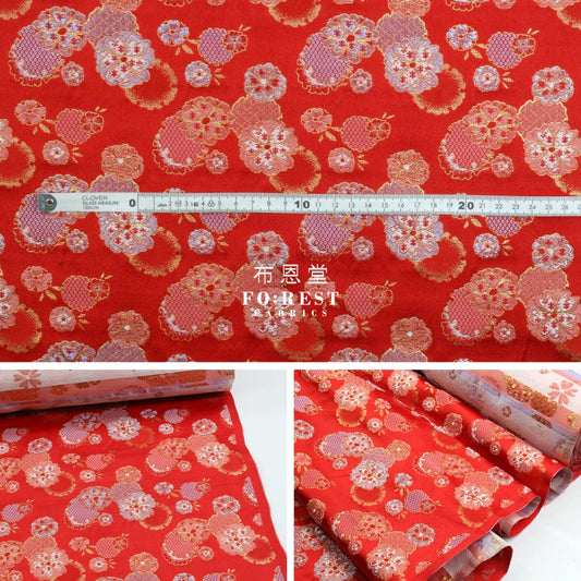 Gold Brocade - SHIPPO Flower KINRAN fabric Red