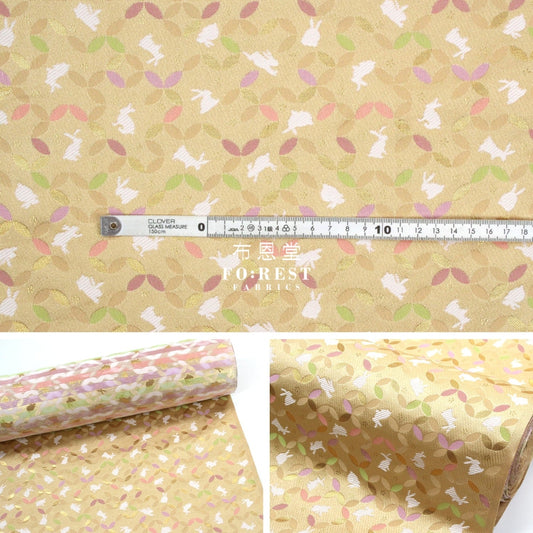 Gold Brocade - Shippo rabbit Flower fabric Gold