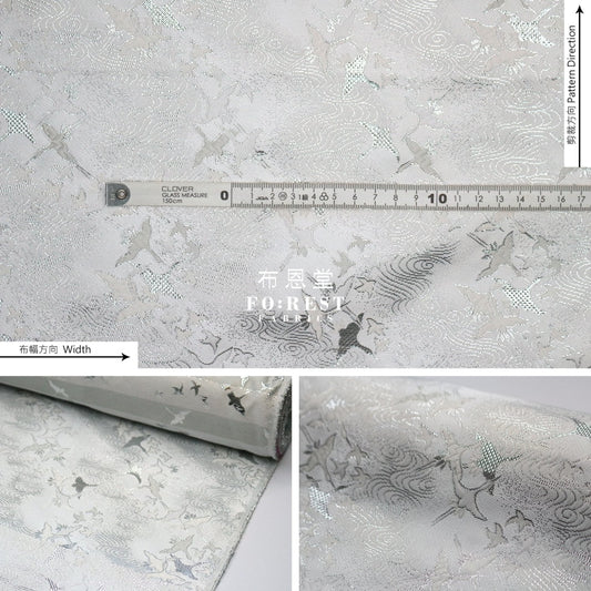 Gold Brocade - Cloud Crane 雲中鶴 fabric White