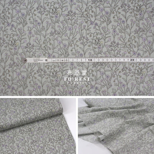 Embroidery Corduroy - Flower fabric Gray 燈芯絨