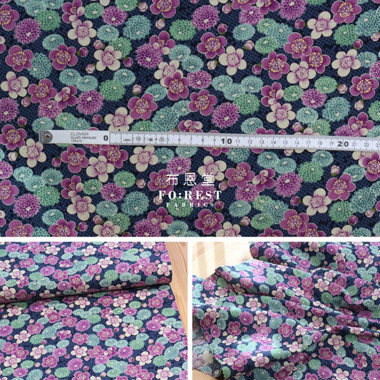 Sold out 售罄cotton - Peony Japanese fabric Navy