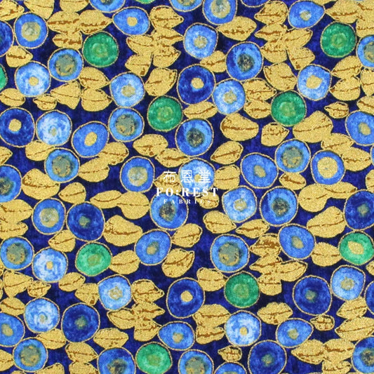 cotton - Gustav Klimt Jewel Leaf Metallic fabric Blue