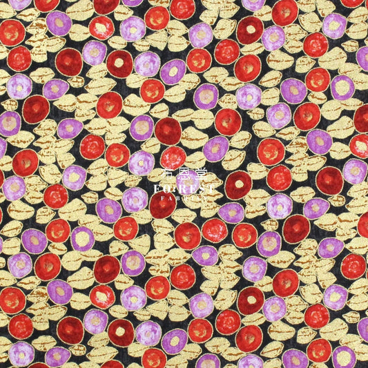 cotton - Gustav Klimt Jewel Ovals Metallic fabric Red