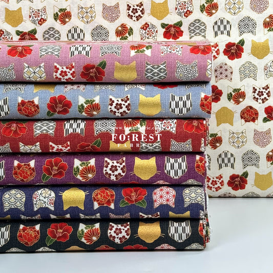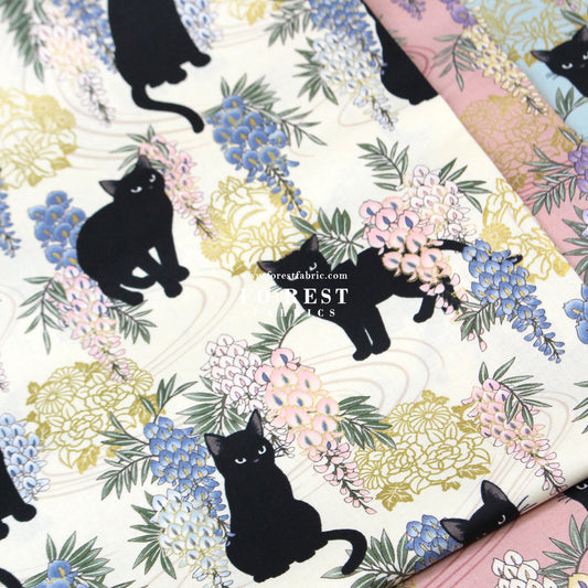 cotton - Sakura Blooms cat fabric Cream