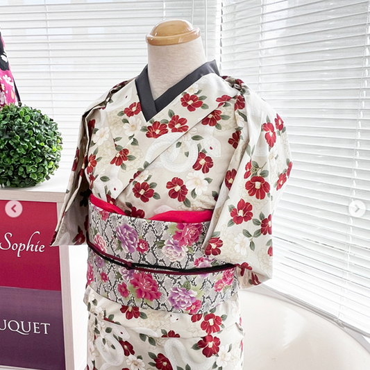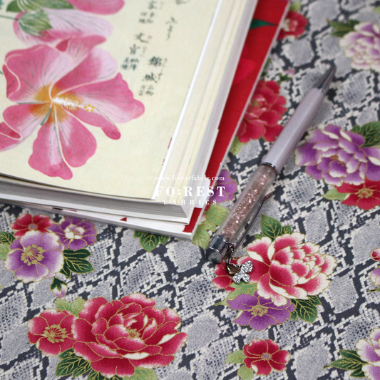 cotton - Sanke Peony金彩白蛇 fabric Gray