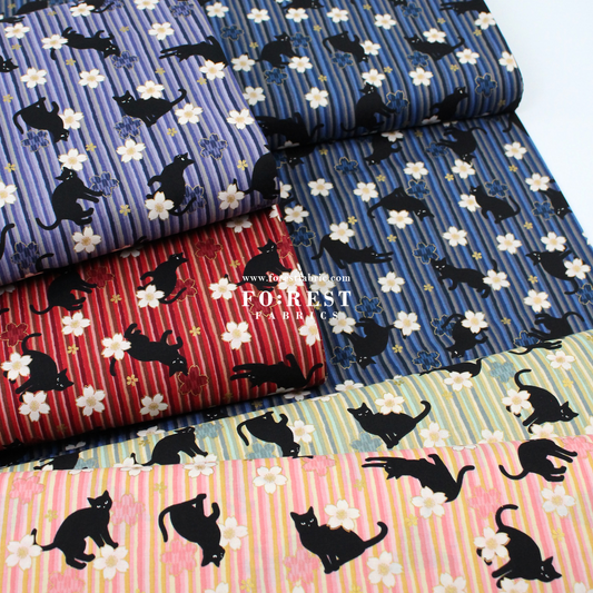 cotton - Sakura Strip cat fabric Pink