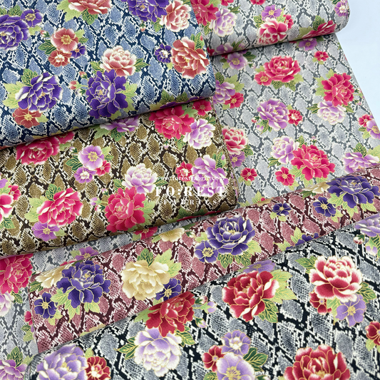 cotton - Sanke Peony金彩白蛇 fabric Navy