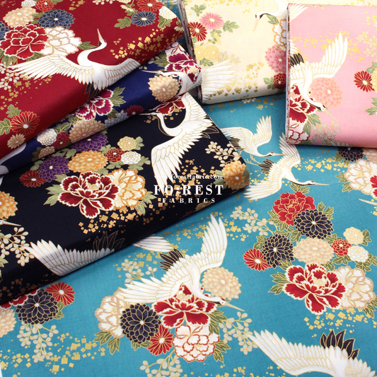 Sold out 售罄cotton - Crane fabric Red