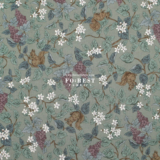 cotton - Flowers Squirrel fabric Moss
