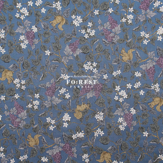 cotton - Flowers Squirrel fabric Blue