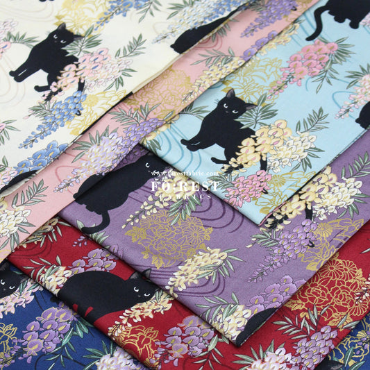 cotton - Wisteria flower cat S size fabric Wine