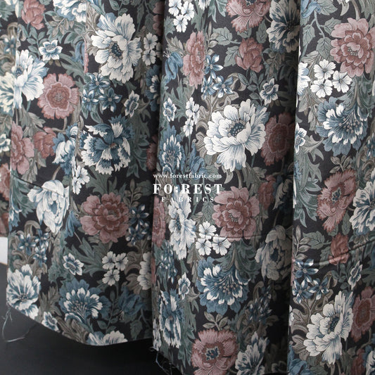 cotton - Gentle Flowers fabric Charcoal Black